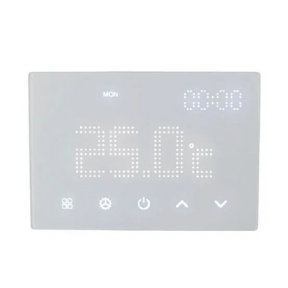 Il Cronotermostato Smart Wi-Fi digitale Touch da incasso è la scelta ideale per chi desidera un controllo moderno, preciso e completamente automatizzato della temperatura domestica. Con il suo design elegante e la finitura bianca, si integra perfettamente in qualsiasi ambiente, offrendo un aspetto pulito e raffinato che valorizza ogni parete.