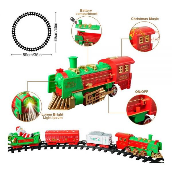 A rendere tutto ancora più magico ci pensano la musica e la luce. Il trenino è infatti dotato di un allegro motivetto musicale natalizio che accompagna il suo passaggio, mentre le lucine LED integrate illuminano i vagoni con delicati giochi di luce, creando riflessi e atmosfere calde e gioiose. È un vero spettacolo che conquista il cuore e coinvolge tutti i sensi, soprattutto quello dei più piccoli, che lo guarderanno con occhi pieni di meraviglia.