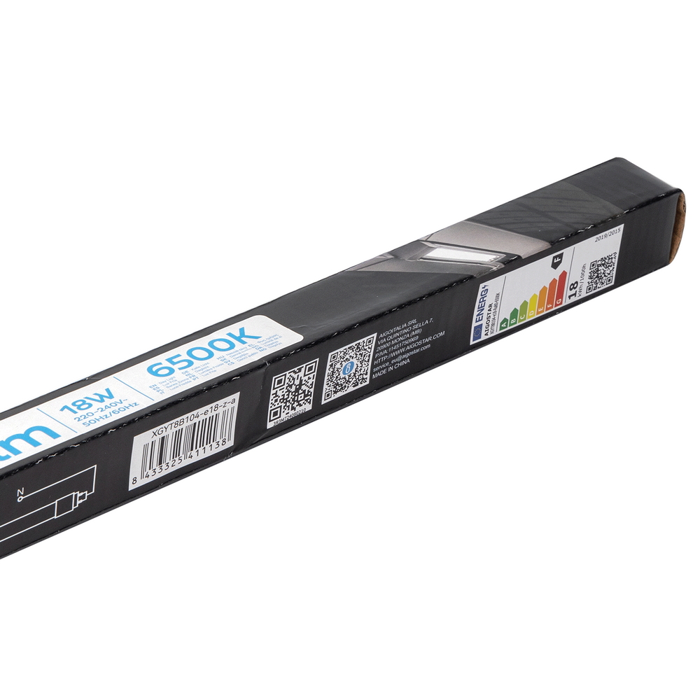 Con una potenza di 18W e una luminosità di 1900 lumen, questo tubo LED è pensato per offrire un’illuminazione intensa a basso consumo. L’angolo di apertura di 180° assicura una distribuzione ampia e omogenea della luce, perfetta per spazi come uffici, cucine, garage o magazzini.